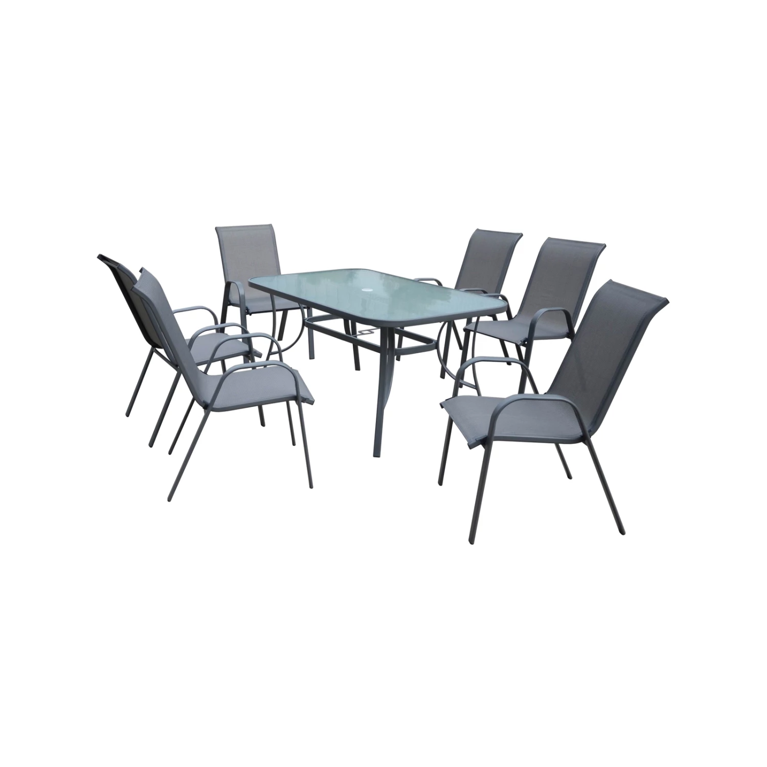 The Marquee steel sling back seven piece setting features six black and grey sling back chairs with a tempered glass table with steel frame.Providing elegance, comfort and style in one package, the Marquee steel sling back seven piece setting is the perfect for your outdoor entertaining area.