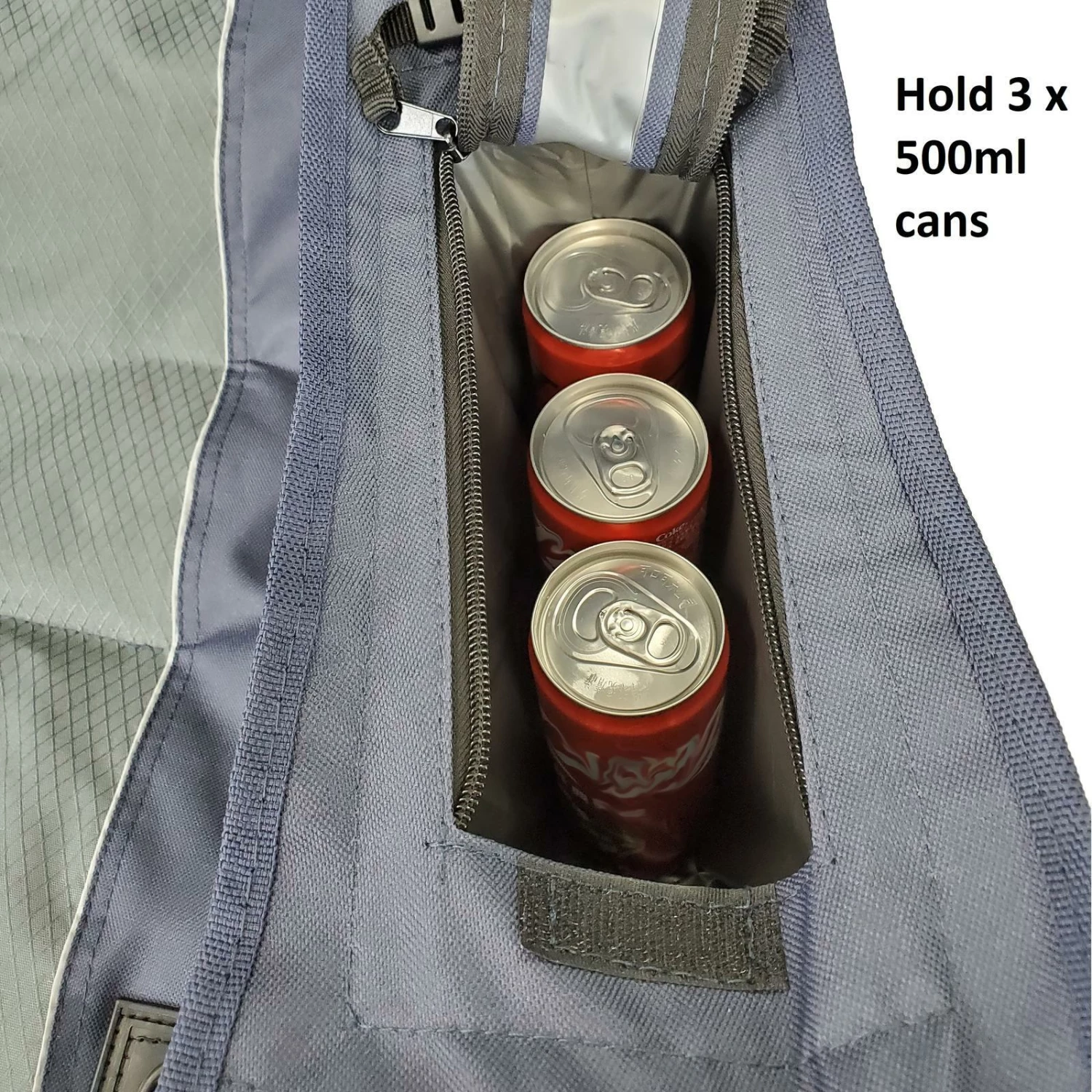 - Arm rest cooler bag and side cup holder with bottle opener