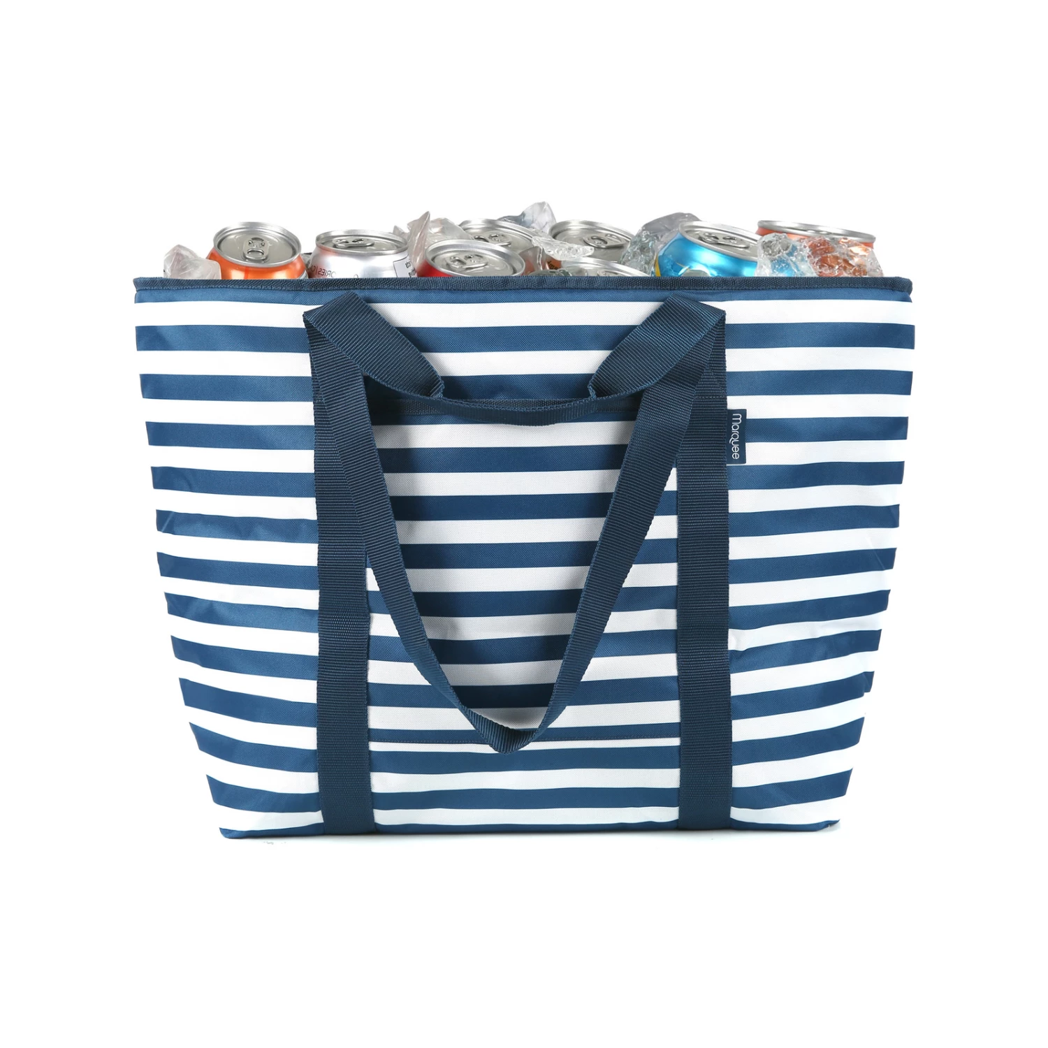 The Marquee Tote has high density thermal insulation and Ultra Safe®, Easy Clean, Leak Proof, PEVA Lining, meaning, supper easy to clean and your food is safe from bacteria.The 2 different size carry handles make carrying the Tote so easy, either over the shoulder or with your hands.The slip front pocket is perfect for storing your keys, phone or shopping list.