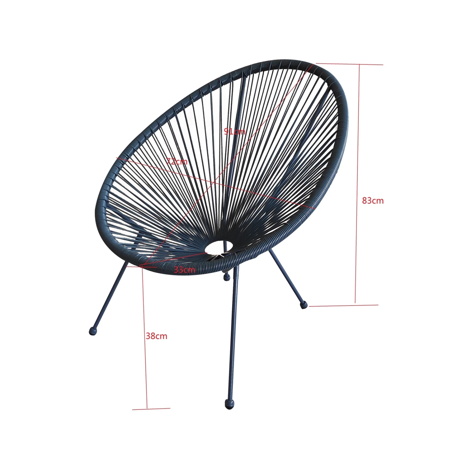 With a durable, powder coated steel frame, polyethylene seat and funky design, this Acapulco-style chair is both modern and comfortable. Also available in a range of colours, it will brighten up any alfresco area.